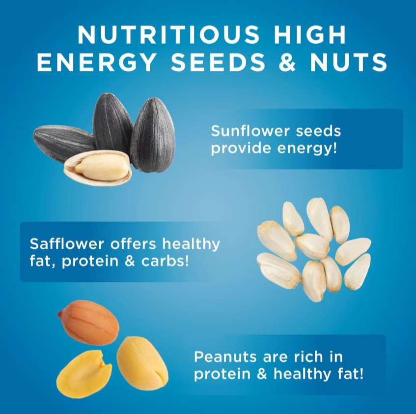 Ingredients | : | Millet, Black Oil Sunflower, Cracked Corn, Safflower, Sunflower Hearts, Peanuts, Striped Sunflower |