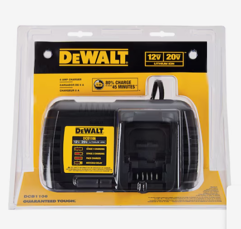 This 6 Amp charger offers the most versatility for all of your charging needs. All Lithium Ion batteries within our Compact 12-Volt, 20-Volt MAX*, and heavy-duty DEWALT FLEXVOLT battery range are compatible with this charger. The new Stage 1 and Stage 2 LED indicators communicate more about the battery's state of charge than those without. The Stage 1 LED blinks until the battery is approximately 80% charged. It then stays solid and the Stage 2 LED blinks until the battery is fully charged. The latching technology increases the durability of the charger and battery connection, adding safer transport when the battery is installed. The 6 Amp charger also features through-hole mounts, secure latching, and double insulation.