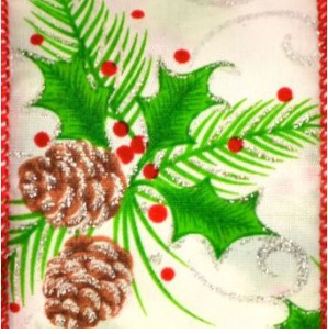 Wired Holly Ribbon. 2 1/2″ Wide. 50 yard roll. Weatherproof for outdoor use. 1/cs.